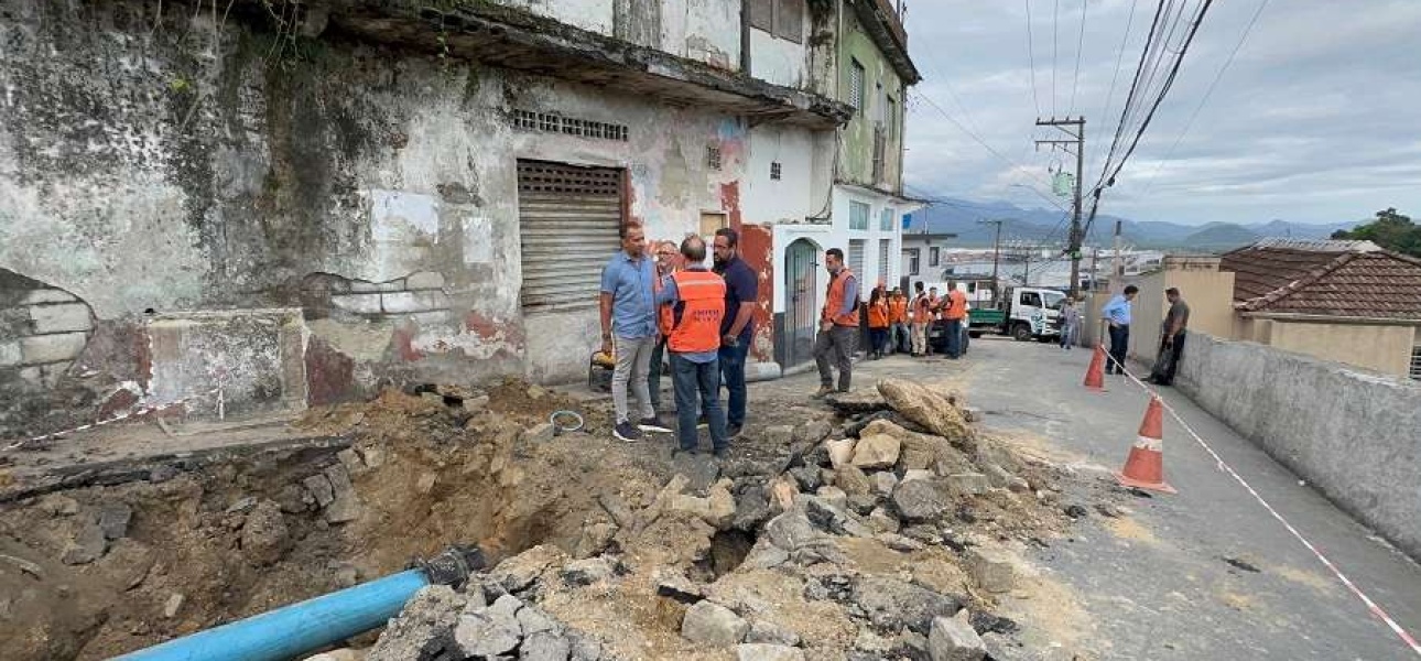 O parlamentar fez uma vistoria no local do incidente que gerou uma série de transtornos para os moradores da região, afetando ruas como São Marcos, Assunção de Nossa Senhora e Nossa Senhora do Monte Serrat, além de provocar risco estrutural a residências, que estão sendo avaliadas pela Defesa Civil de Santos.
