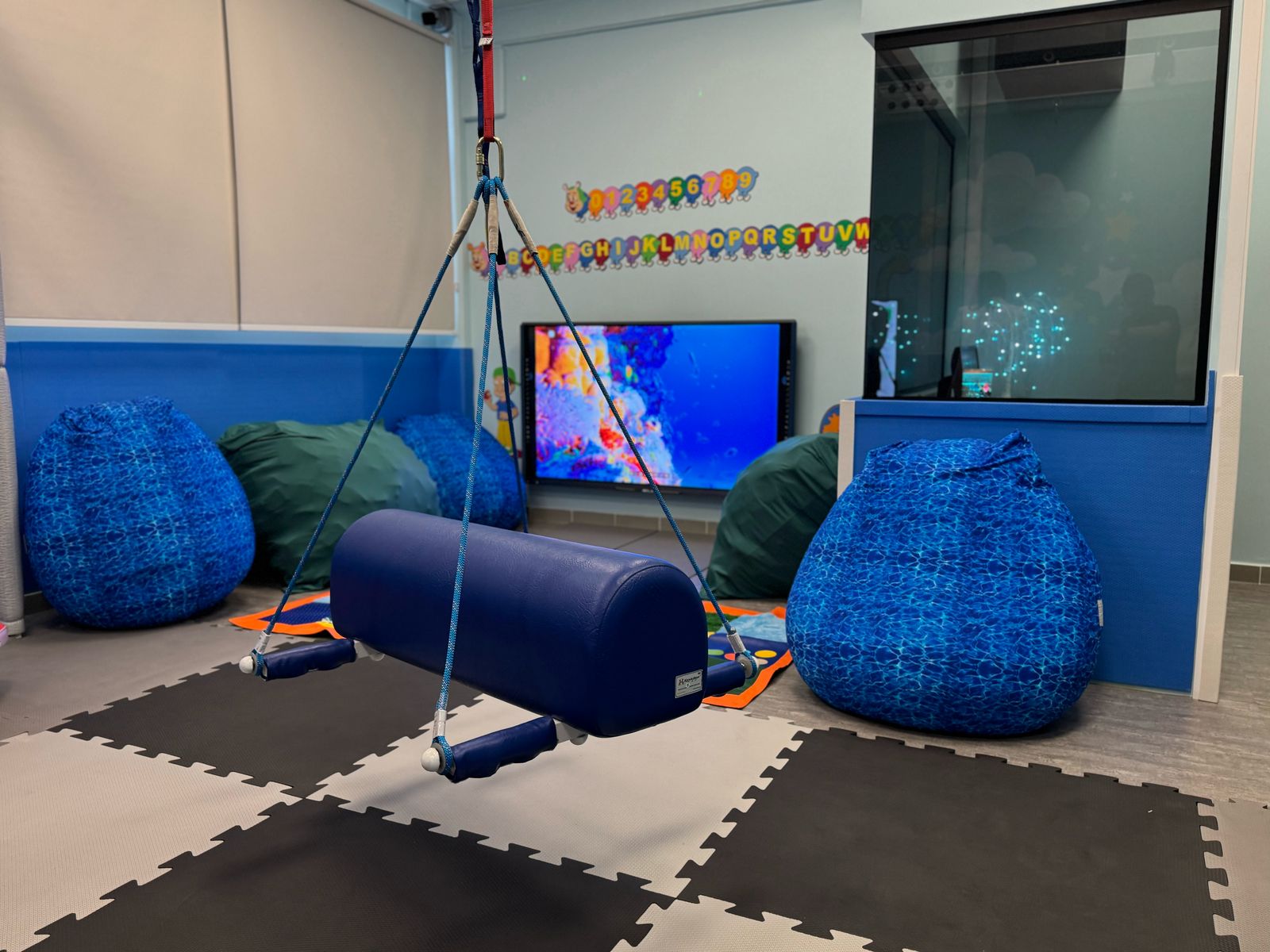 Integrando tecnologia educacional e estímulos motores, a sala dispõe de softwares de acompanhamento, telas interativas e materiais que desenvolvem habilidades motoras, além de recursos de luz e som para a estimulação sensorial. Todo o projeto foi desenvolvido pela empresa Net Telecom, referência em inovação educacional, e aprovado dentro das normas de qualidade e segurança.